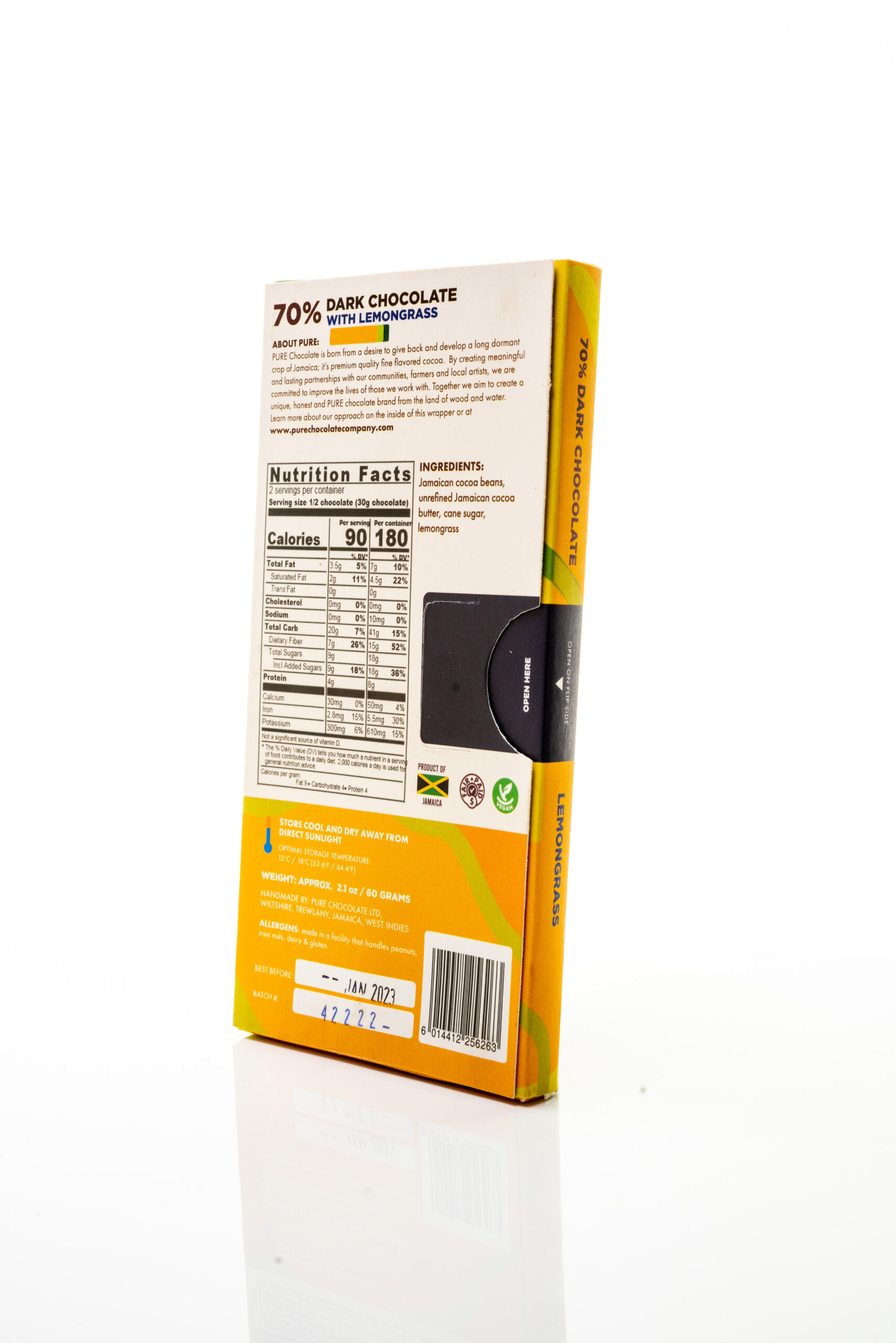 Zutaten: Kakaomasse, Rohrzucker, Kakaobutter, Zitronengras